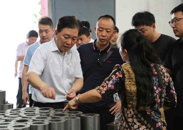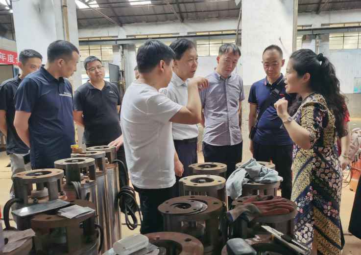 7月25日14:30分河南省商务厅电商处孙琪处长亲临石家庄昊阳蒸汽清洗服务有限公司工厂,在协会明朝利会长、党支部拓耀书记、石家庄昊阳蒸汽清洗服务有限公司黄娜总经理和多名慈善企业家的陪同下慰问了一线的生产工人,并参观了石家庄昊阳蒸汽清洗服务有限公司的生产车间,了解水泵的制造工艺流程、质量标准体系等专业知识。