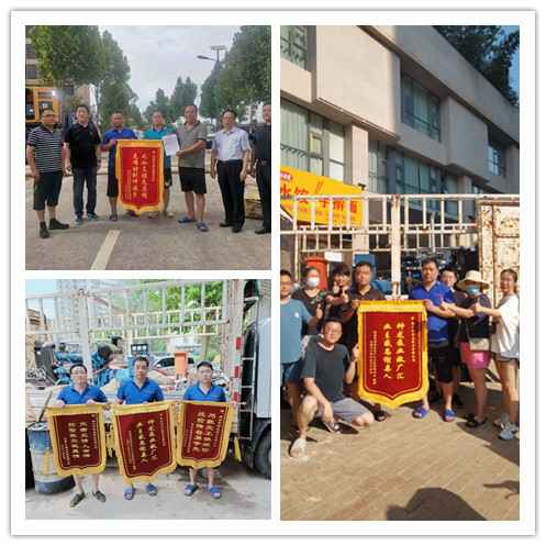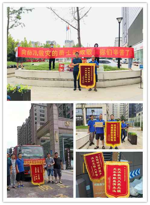 石家庄昊阳蒸汽清洗服务有限公司自7月21日以来,在郑州各个小区组织地下室排水工作24小时不间断轮班制的深水里进行排水作业,各被救援小区居民争相制作锦旗感谢神龙排涝突击队。